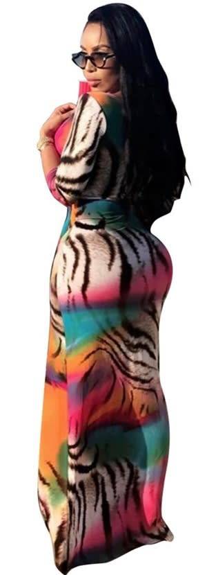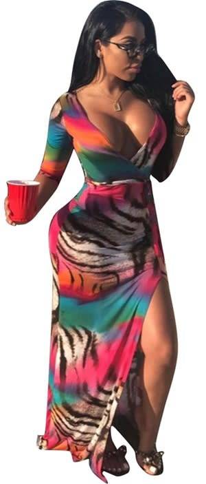 *WILD ROSE* Sexy Plunging Leopard Sleeve Maxi Dress - S/M/L/XL/2XL *WILD ROSE* Sexy Plunging Leopard Sleeve Maxi Dress - S/M/L/XL/2XL