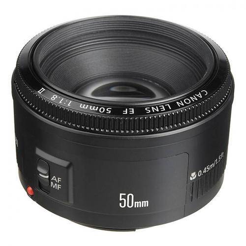 The Canon EF 50mm lens is the lightest EF lens and weighs only 130g. This is a compact and high-performance, standard lens. Its Gaussian optics provide sharp delineation from near to far focusing distances. The color balance is excellent for a standard lens.This is a perfect starter lens.