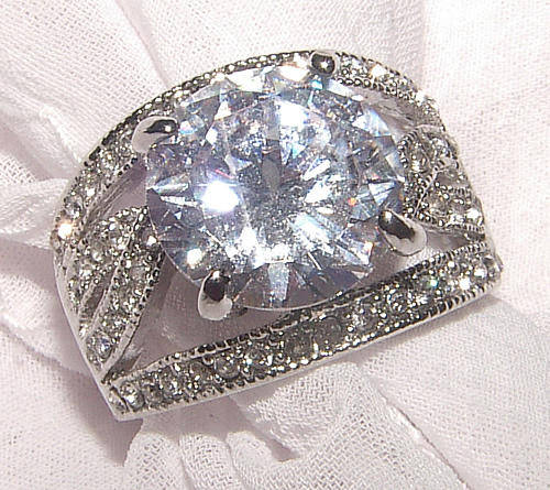 SURROUNDED BY SPARKLING ROUND CLEAR RHINESTONES ELECTROPLATED SILVER BAND WIDTH ON TOP - 15.7mm RING SIZE - O / 7.25