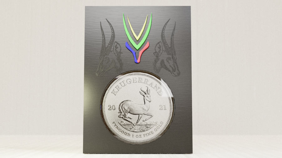 1oz Silver Krugerrand with a silver purity of greater than 99.9% with the celebrated unique rainbow themed plaque for our rainbow nation with a embossed mirrored springbok above the coin