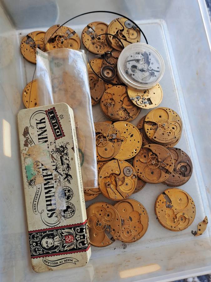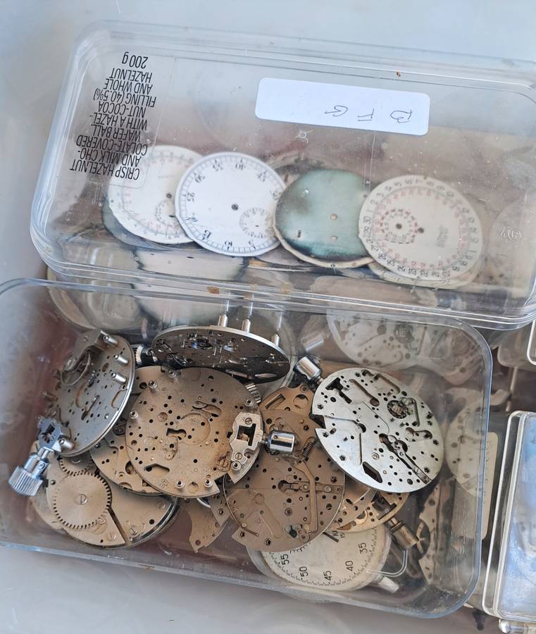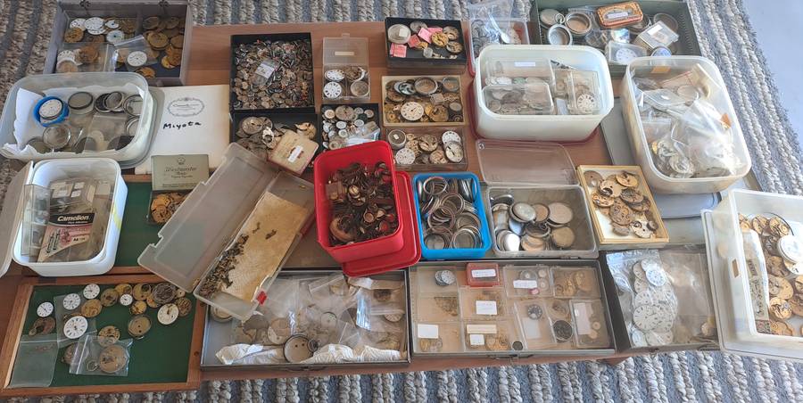Hi there, I have this incredible massive collection of watchmakers parts, the collection is truly incredible with a stunning amount of clock faces, pocket watch cases, brass movements and spades of other delicate pieces. The collection has a variety of uses, but could be used in a creative way for an art project.