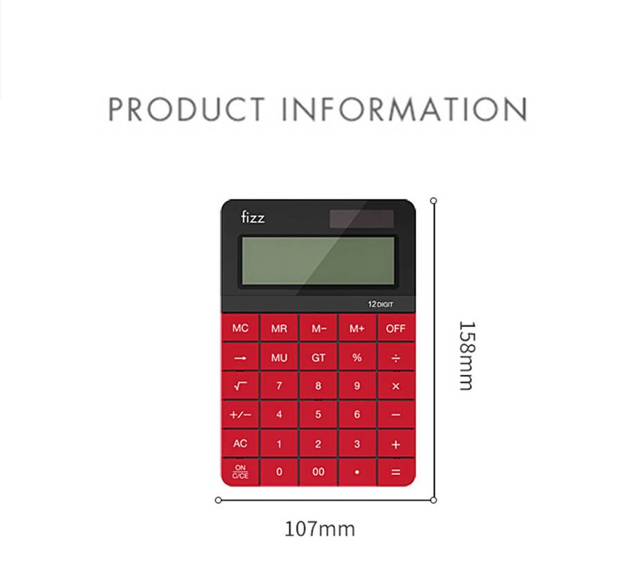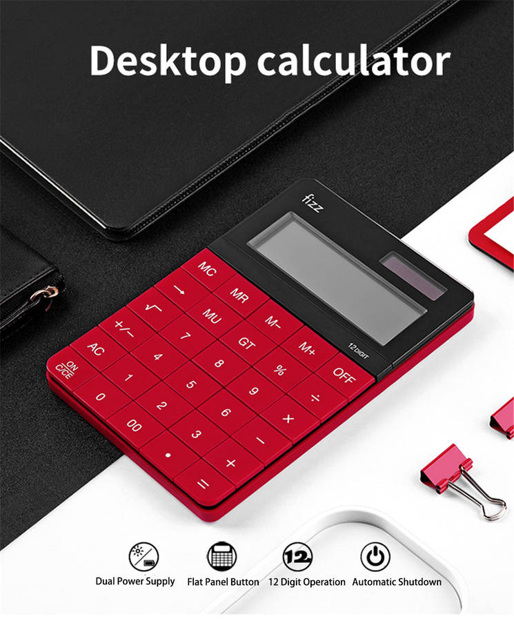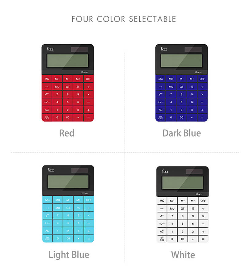Features: a?? 12 Digits. a?? 100% brand new. a?? Extra big display . a?? Two way power: SOLAR/BATTERY. a?? Lightweight, durable plastic keys. a?? Automatic shutdown common computing functions. Specifications: a?? Dimension: about 13*107*158mm a?? Color: White, Dark Blue, Light Blue, Red a?? Power:? Solar + LR44 button cell Package Includes: a?? 1 * Double Power Desk Calculator Note: a?? Please allow 0-1cm error due to manual measurement.? a?? Due to the difference between different monitors, the picture may not reflect the actual color of the item. Thank you!