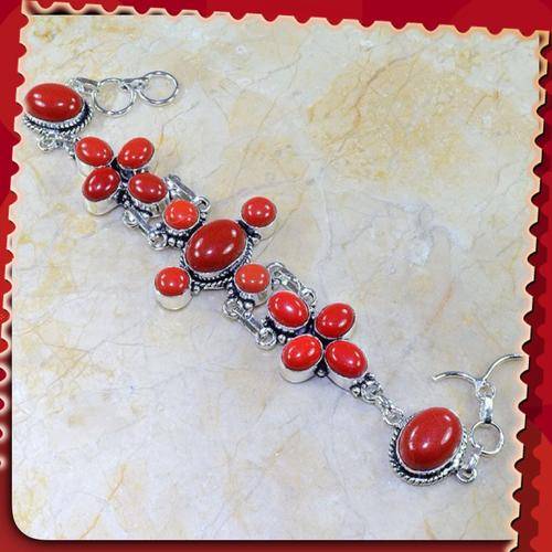 ***YOU CANT BELIEVE HOW GORGEOUS THIS IS*** RED CORAL NATURAL GEMSTONE .925 SILVER BRACELET