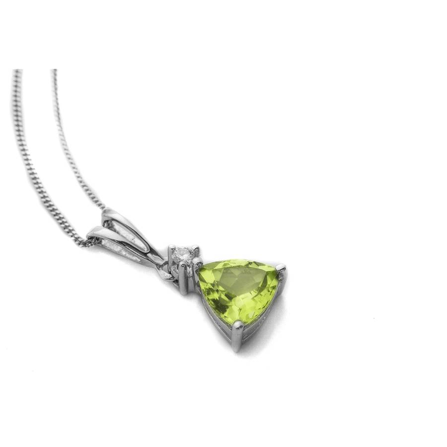 0.02 Carat SI Diamond with Peridot Pendant Necklace in 9ct White Gold 45 cm - FREE DELIVERY