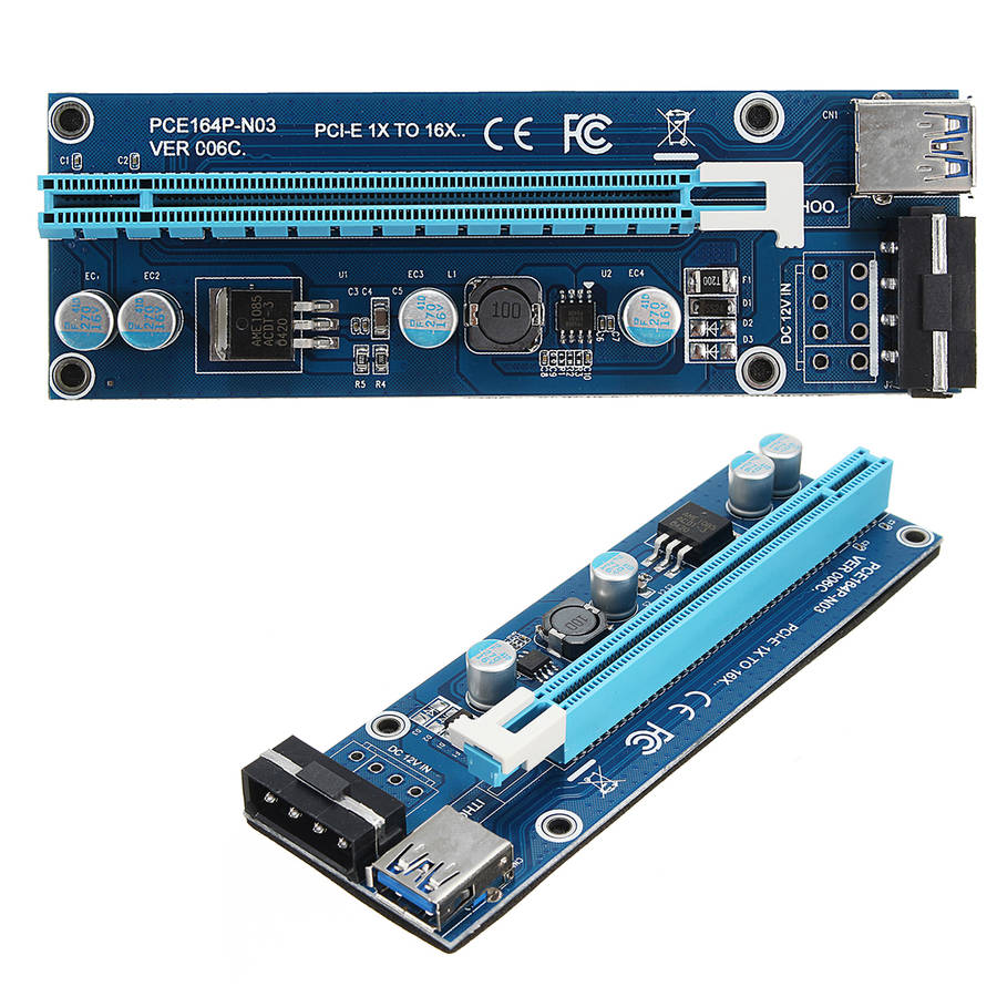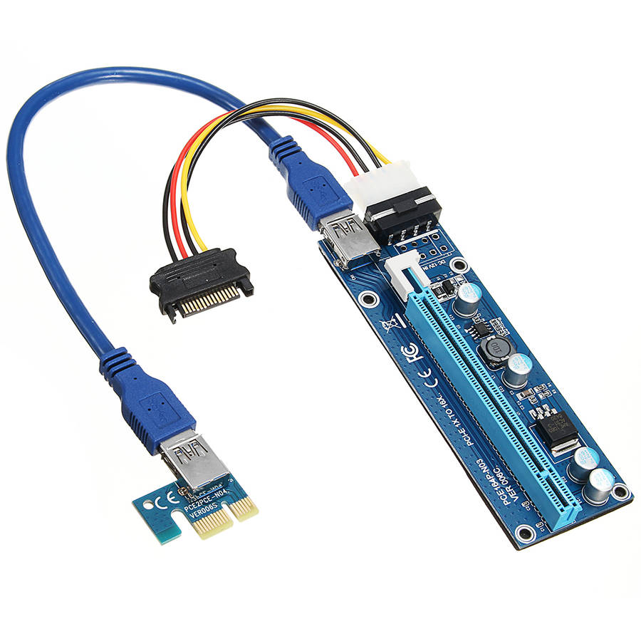 1x PCI-E 16X adapter 1x PCI-E 1X riser board (4) capacitor + VRM on board 1x 24" inche USB 3.0 cable 1x SATA 15Pin 6Pin molex PCI-E power adapter