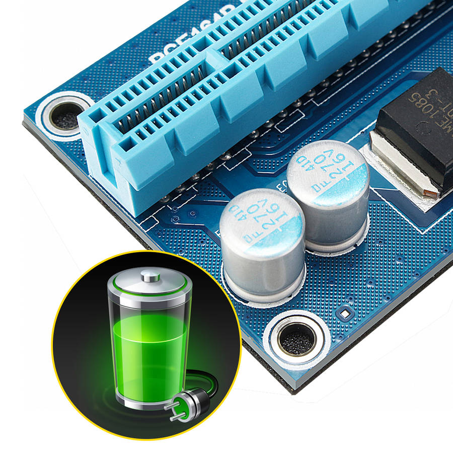 1. Onboard Voltage regulator & (4) FP solid-state capacitors. 2. Resulting in maximum power stability on the GPU. 3. Saving a couple of dollars with the cheap stuff while having your rig unstable and/or shutting down. 4. Rare PCI-E 6pin molex connectors for power & we also include SATA power adapter. 5. Easy single press lock unlock for the GPU. 6. USB cable is soft and stable, easy to track, graphics can be placed freely. 7. Slot, with a fixed buckle, more convenient to remove the graphics or fixed the graphics, it will not fall off from the slot.
