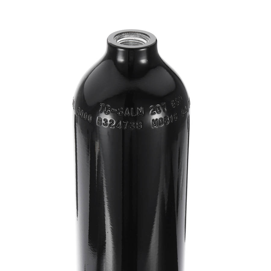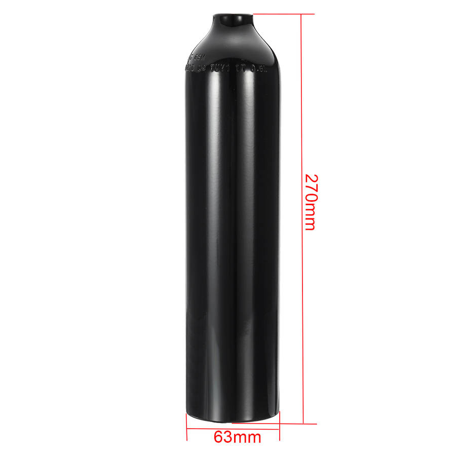 Specification: Material: Aluminum Color: Black Tank Height: 270 mm Tank Diameter: 63 mm Capacity: 0.5 Liter Pressure: 207 Bar/3000 PSI Bottle Mouth Size: 5/8-18 UNF