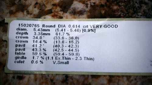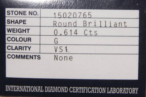 0.614ct Diamond; Colour G; Clarity VS1. Symply Spectacular! Huge Bargain! Will close on first bid