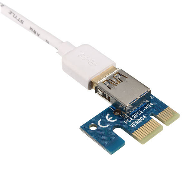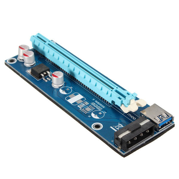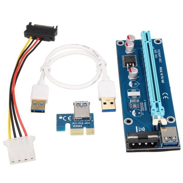 Features: 1. Safer, more efficient, more practical 2. The graphics card power supply adopts three FP solid-state capacitors, make graphics more stable power supply security. 3. Parallel transfer tapes or big 4 pin interface to strengthen the power supply and make the video card power independence from motherboard 4. Solve the problem that welding point fragile burn, transmission signal attenuation, platoon line length is not enough and so on Package included: 1 x PCI-E 16X adapter 1 x PCI-E 1X riser board 1 x USB3.0 cable 1 x SATA15Pin-4Pin Power cable