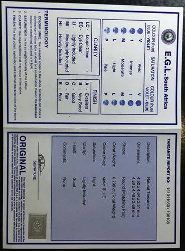 0.70 cts PAIR NATURAL TANZANITE GEMSTONES -