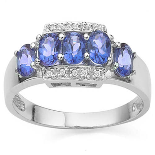 0.74 CT GENUINE TANZANITE & 10PCS WHITE DIAMOND 0.925 STERLING SILVER RING
