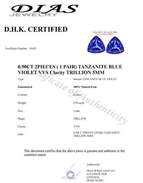 code: | 0.90CT 2PIECES ( 1 PAIR) TANZANITE BLUE VIOLET VVS Clarity TRILLION 5MM |