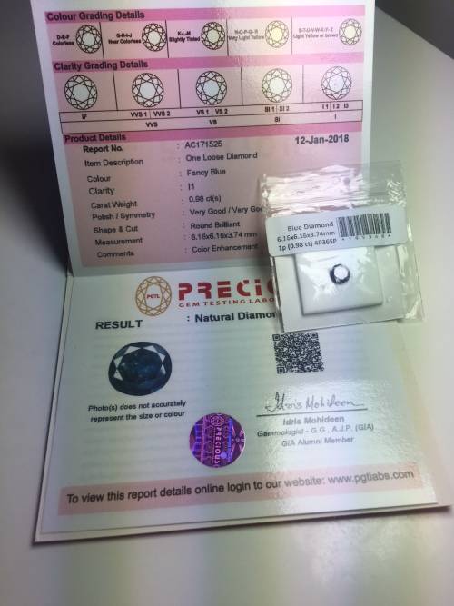 0.98 ct PGTL Certified Supreme 6 mm Round Shape Genuine Blue Diamond Loose Stone