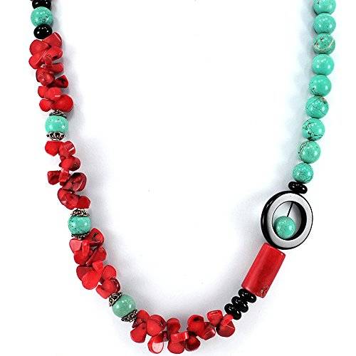 GemStone Type --- Blue Turquoise;Red Coral & Black Onyx Color: Pls see photo Size: Turquoise beads size about 12x12mm;Onyx size 10x5-30x30mm;Coral size 10x7-26x12mm. Necklace length size is 30". (26mm=1inch) Others: Beads Long Necklace; no Clasp. It is the newest fashion Jewelry; good shin surface quality.