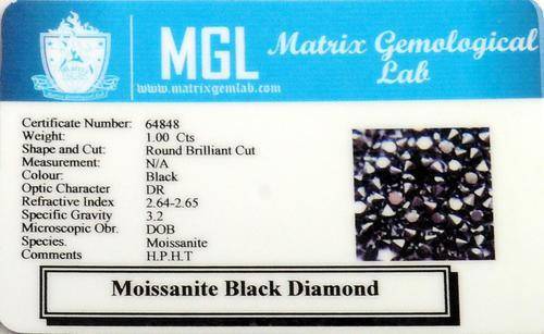 1.00 Ct Certified Round Moissanite Jet Black Coloured Pointers for Jewelry Setting