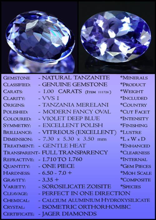 1.00CT VIOLET DEEP BLUE TANZANITE [VVS] NATURAL OVAL WITH VIOLET FIRE