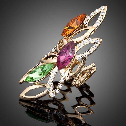 1.05ct 18kt Gold Plated Three Multicolour SWA ELEMENTS Austrian Crystal Water Drop Ring**In Stock**