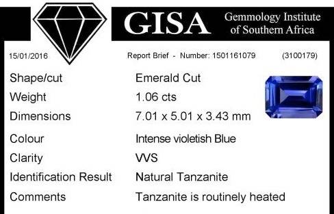Gem Certificate: G.I.S.A. CERTIFICATE (Gemmology Institute of Southern Africa)