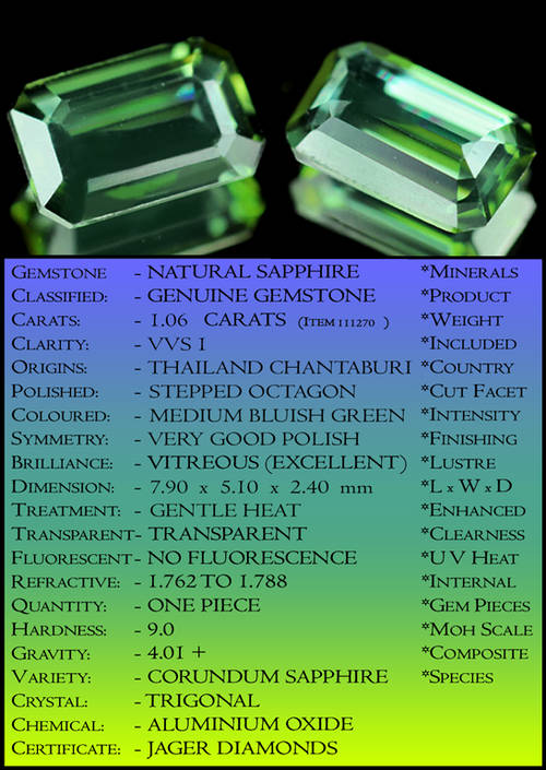1.06ct NATURAL OCTAGON SAPPHIRE [VVS] ~ GLEAMING MEDIUM BLUISH GREEN GEM