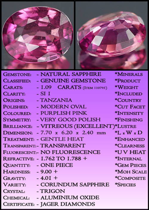 1.09ct Tanzanian Purplish Vivid Pink Sapphire - SI - Morogoro Natural Precision Oval (Heated)