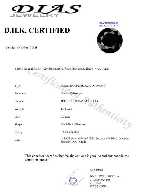 code:  1.10CT Natural Round 6MM Brilliant Cut Black Diamond Solitaire -AAA Grade