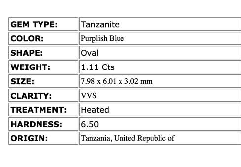 1.11 Ct AAA "HKD" CERTIFIED BLUISH VIOLET "D" BLOCK TANZANITE FREE CERTIFICATE!!