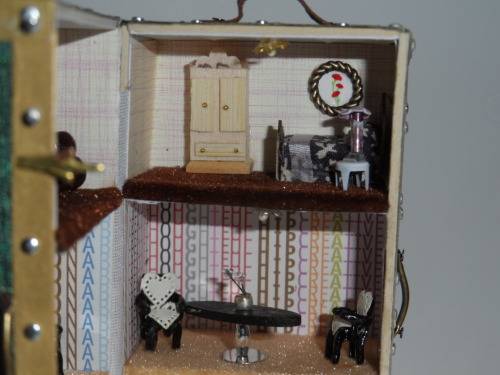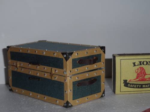 LOVELY 1/12 TH SCALE TRAVELLING TRUNK WITH 1/144 HOUSE INSIDE. HANDCRAFTED