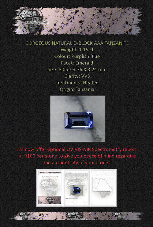 1.15ct AAA GORGEOUS! D-BLOCK PURPLISH BLUE TANZANITE