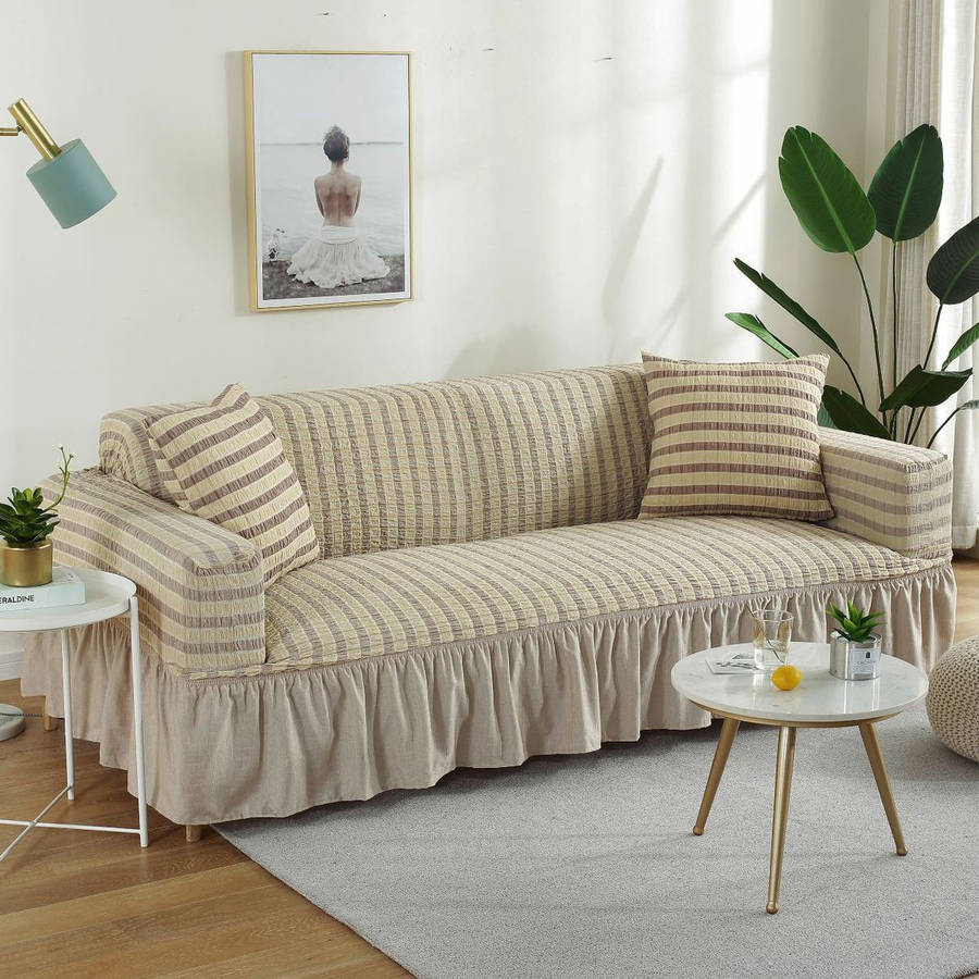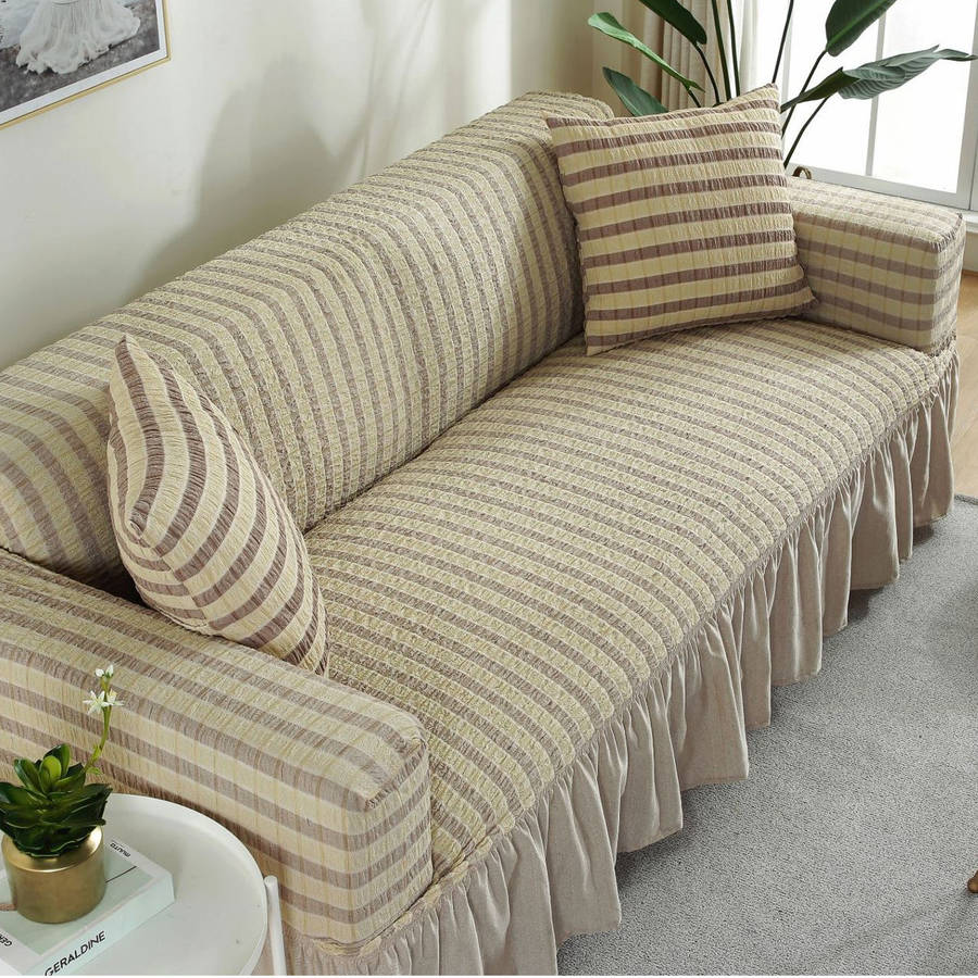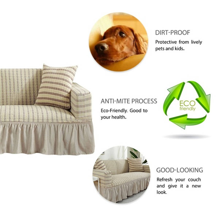 Specification: Type: Sofa Cover Material: Polyester Fabric Size:(approx.) 1 Seat (length: 85-105cm/33.47-41.34) 2 Seater (length: 135-155cm/53.15-61.03) 3 Seater (length: 165-185cm/64.96-72.84) Package Included: 1X Sofa Cover Features: Fabric: Soft and comfortable sofa cover with elegant fittings. The length of the skirt is about 30cm/11.82. Suitable for sofas (please measure the size in advance according to the size chart on the left). With a non-slip foam roller to prevent the slip of the sofa cover, the elastic cord can easily adjust the position of the skirt. Furniture protection: protect your sofa from daily wear and pet hair. Notice: 1.The real color of the item may be slightly different from the pictures shown on website caused by many factors such as brightness of your monitor and light brightness. 2.Please allow slight deviation for the measurement data. 3.Please allow 2-3cm error. If you have any questions, please let us know. Wish you have a happy shopping time!
