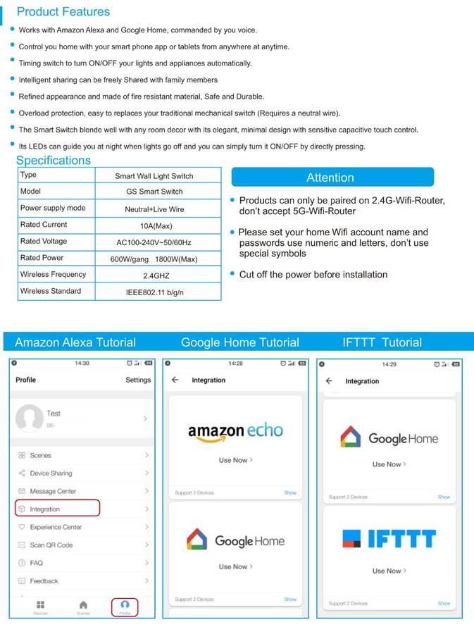 6.Overload protection, easy to replaces your traditional mechanical switch (Requires a neutral wire).