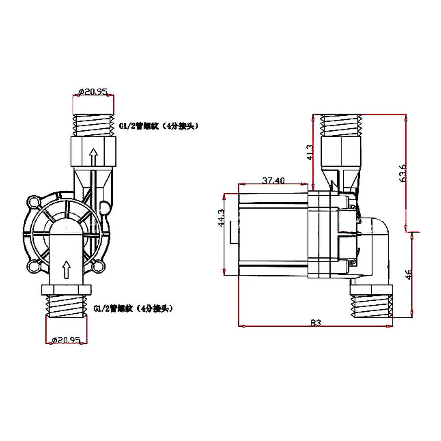 1. The direction of the arrow on the pump liquid flow flag.