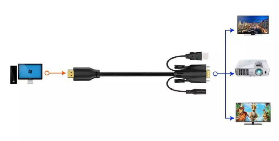 This product is similar to the HDFURY and HDMI to VGA Ultimate 1080 model powered converters. It will convert video from a HDMI source to VGA / HD15. The Cable has a built-in chipset which is USB Powered as below and will extract audio from the HDMI Stream to analogue 3.5mm Audio to be used on display / projector if needed.