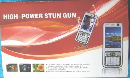 Stun gun disguised as a stylish cell phone. This cell phone stun gun is ideal to catch attackers by suprise, unit has built in torch and is supplied with stylish holder and charger.