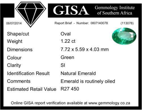 1.22CT CERTIFIED EMERALD 1.22CT CERTIFIED EMERALD