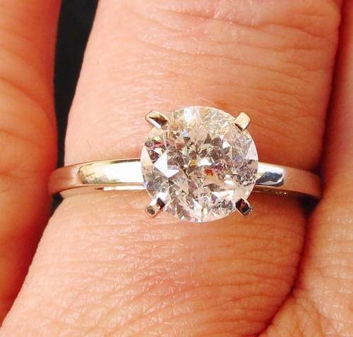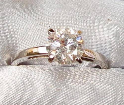 This beautiful natural mined diamond is a 1.32 carat in weight, has a sparkling I1 clarity enhanced purity and a white F-G in color. The diamond is set in a beautiful and timeless, 14 karat solid white gold setting. This ring will truly make any girl smile.