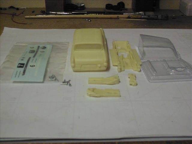 1:32 SCALE FORD ANGLIA SLOT CAR RESIN KIT INCLUDING DECALS WITH CHASSIS THAT TAKES A MABUCHI MOTOR. R600.00 PLUS R45.00 FOR POSTAGE IN SOUTH AFRICA.