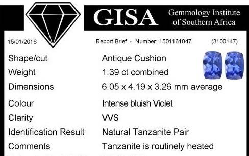 GISA CERTIFIED 1.39CT TANZANITE Matching pair