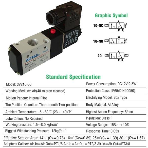 | Model | 3V210-08 | Biggest Withstanding Pressure | 12kgf/c |