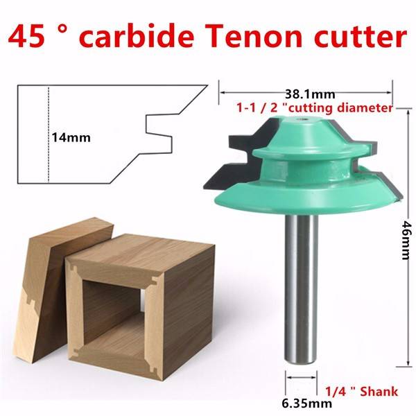 1/4 Inch Shank 45 Degree Lock Miter Router Bit 1-1/2 Inch Cutting Diameter Tenon Cutter for Woodworking