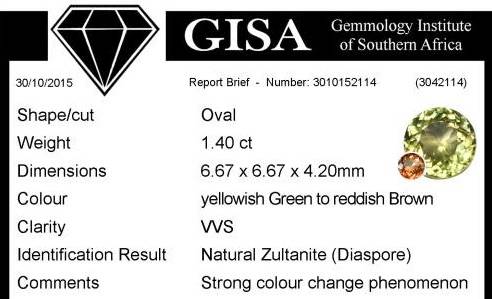 ZULTANITE is extremely difficult to come by. Mined in Turkey. Changing colour from from Yellowish Green during the day, to Reddish Brown in the evening