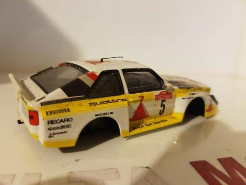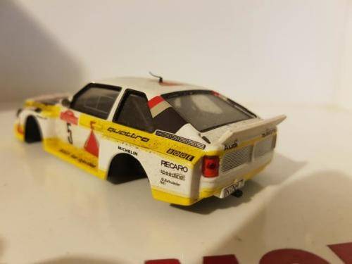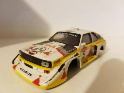 1:43 SCALE DIE CAST MODEL - AUDI QUATTRO - ITEM MAY SHOW SIGNS OF WEAR AND TEAR WITH SCRATCHES PERSPEX BOX IS NOT SUPPLIED SUPPLIED NO WHEELS AND MIRRORS AND HEAD LIGHTS AND WINGS