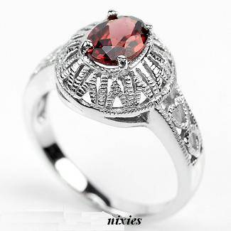 1.50CT GENUINE GARNET 925 STERLING SILVER RING - SIZE 8(Q)
