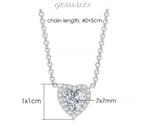 1.5ct CZ Silver Halo Heart Design Pendant Necklace  *CHAIN 40cm + EXTENSION 5cm*