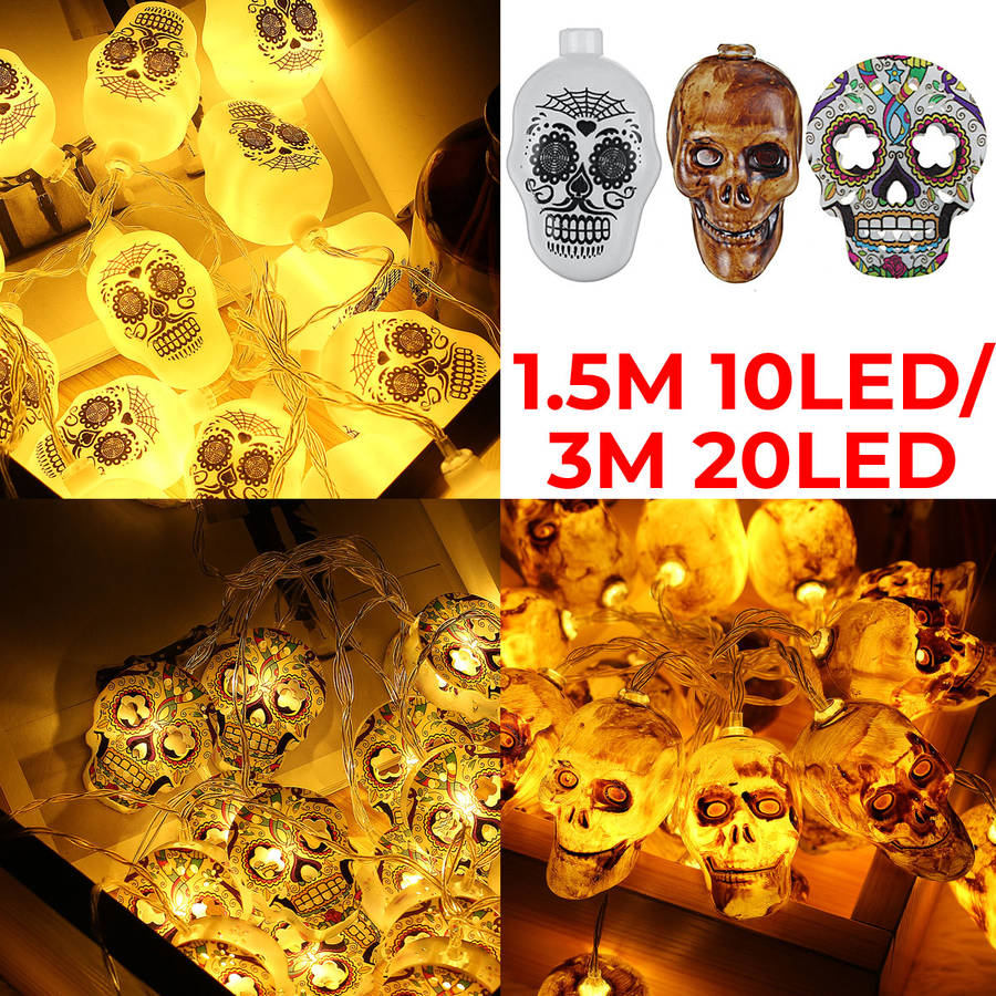 1.5M/3M 10/20LED Halloween Skull LED String Fairy Light Ornamen... (LENGTH: 1.5M | TYPE: ABEACH5PCS)