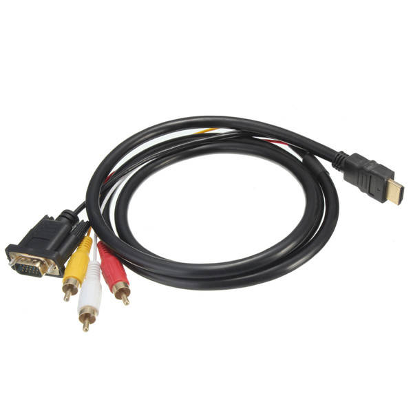 1.5m 5Ft HDTV HDMI to VGA HD-15 3 RCA Converter Adapter Connector Cable For DVD