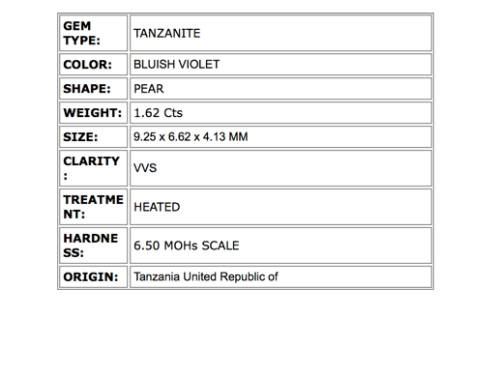 1.62 ct FREE "GIL" CERTIFIED MARVELOUS TOP QUALITY 100% NATURAL TANZANITE