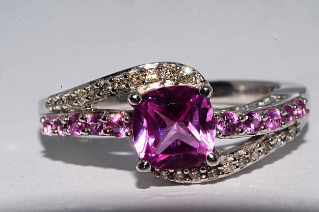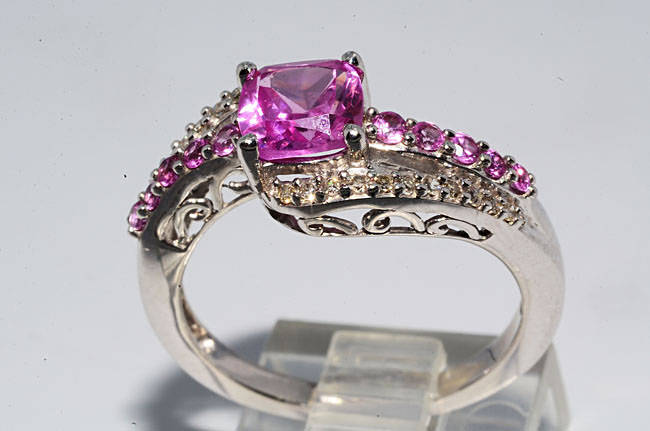 1.70Ct Natural Pink Topaz & Diamond Ring Size 7.25