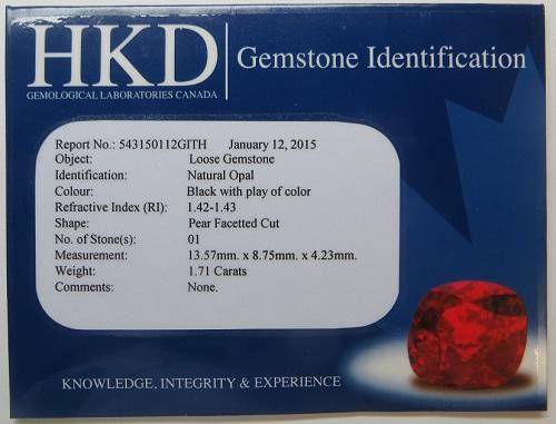 CERTIFIED 1.71CT OPAL PEAR BLACK