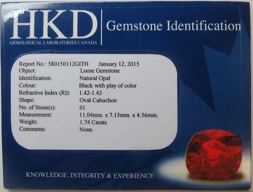CERTIFIED 1.74CT OPAL OVAL CABOCHON BLACK