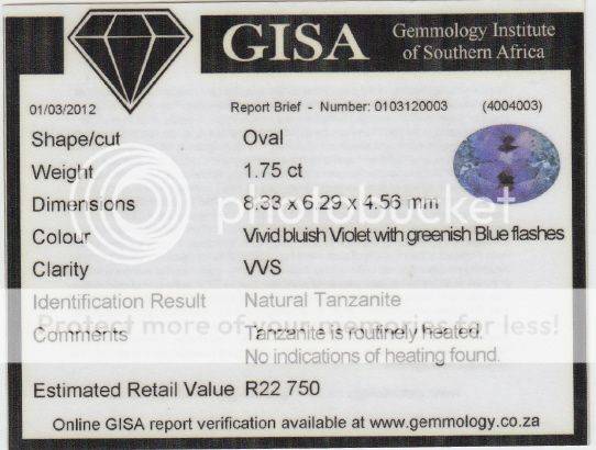 1.75 Oval Intense Bluish Violet with Greenish Blue Flashes Natural Tanzanite (GISA Certificate: Valued at R22 750)